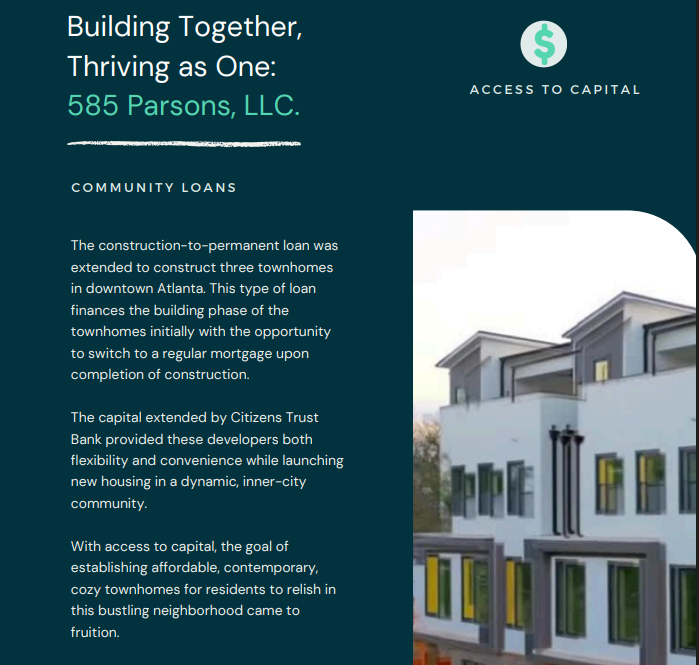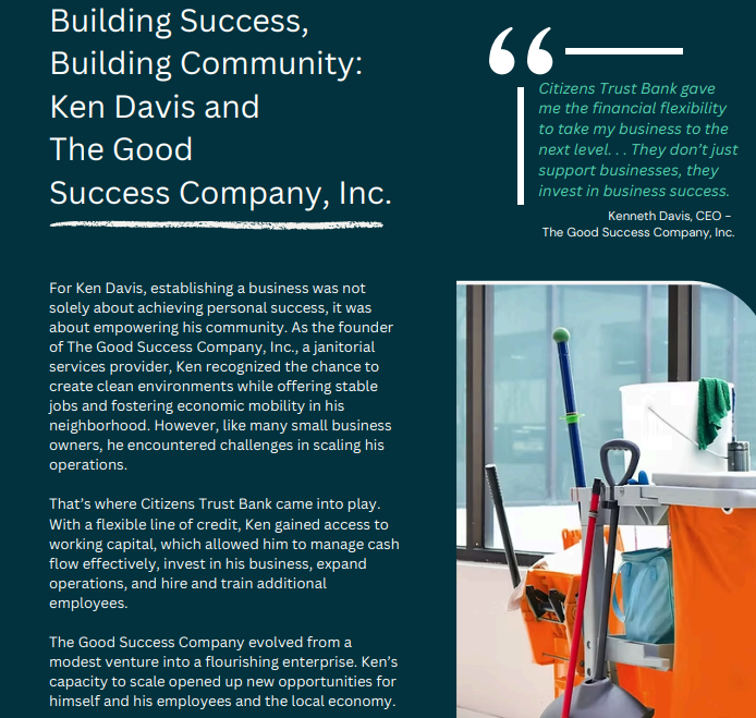 Citizens Trust Bank partners with organizations that share our drive to close the wealth gap and uplift more of our communities’ citizens. Together, we scale impact—leveraging technology, resources, and expertise to reach more consumers and businesses. These partnerships fuel our mission to strengthen community ecosystems and create lasting economic opportunity for underserved / disinvested communities.